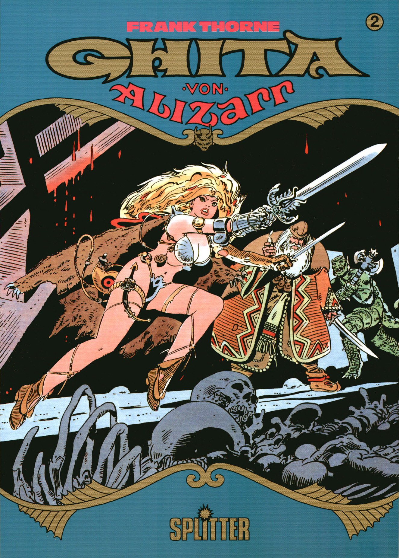 Frank Thornes Ghita von Alizarr ist eine rüpelhafte, kecke Geschichte über Sex, Zauberei und Schwertkampf, erzählt in gewandten Worten und hinreißenden Bildern. Nichts für Selbstgerechte oder Kleingeister. Luxusausgabe auf 600 Exemplare limitiert und nummeriert.